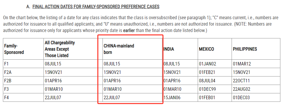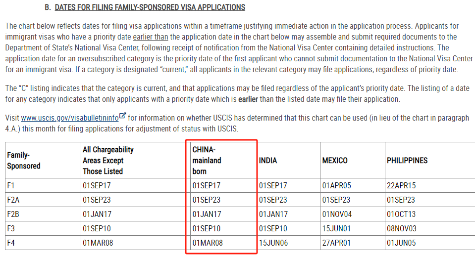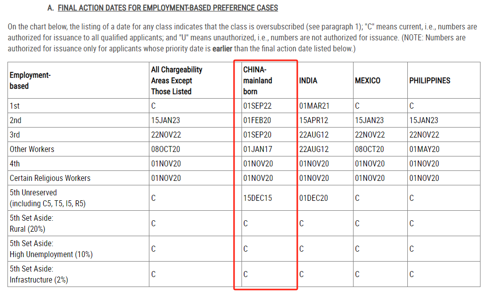 - EB-5(预留类别:乡村,高失业率地区以及基建项目):无排期。