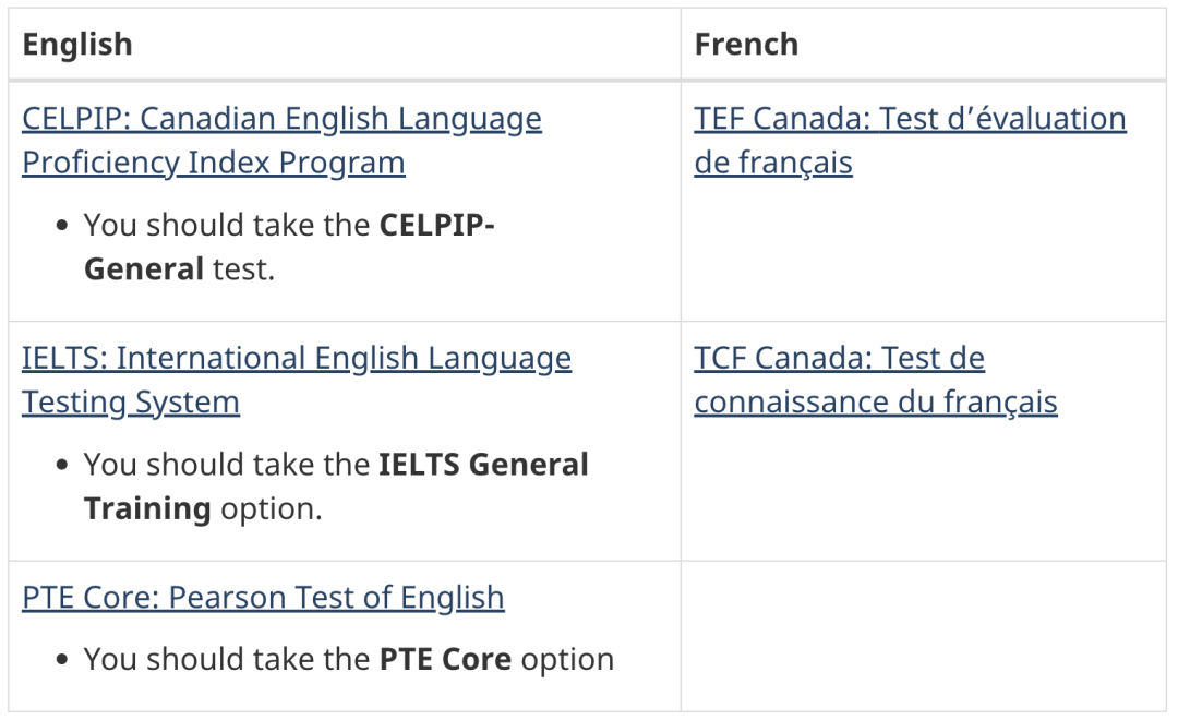 注意,提交PGWP申请时,语言成绩必须是2年以内的。IRCC接受以下语言测试结果:
