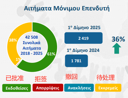 根据希腊移民部数据,从2018年到2025年2月底,希腊黄金签证项目累计接收了42,508份申请,其中首次申请数量为33,816,续签申请数量为8,692。