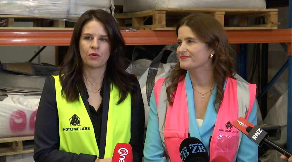 移民部长Stanford和经济增长部长Willis在Lower Hutt发表讲话。Photo: 1News