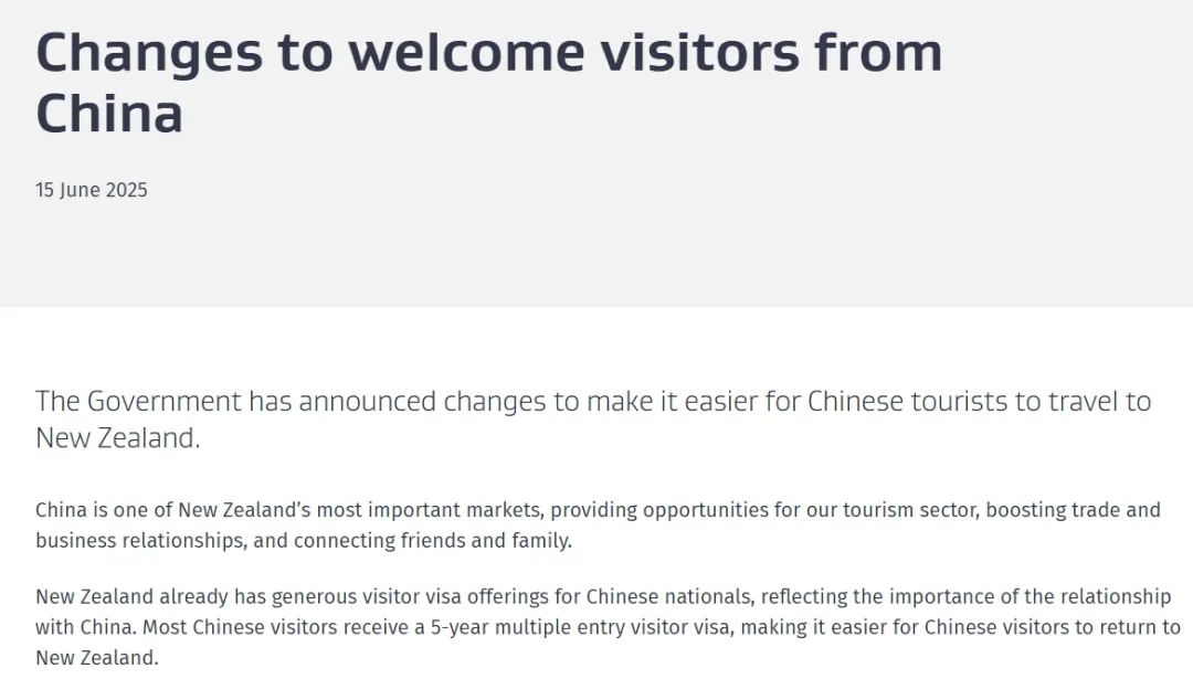 这些举措与新西兰持续优化签证处理速度的工作相辅相成。截至2025年6月,中国公民的访客签证平均仅需5天即可办结,新西兰政府仍在努力进一步缩短办理时间。