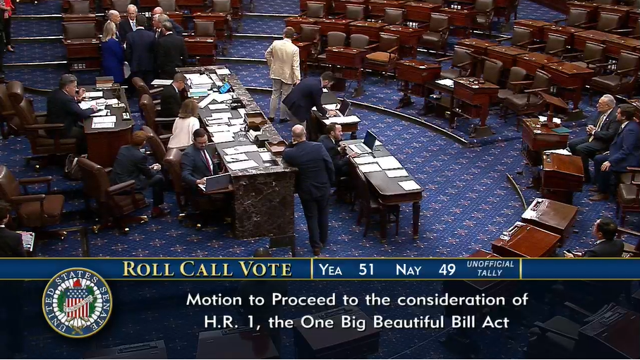 美国总统川普力推的「一项大而美法案(One Big Beautiful Bill Act)」,在参议院终于迈出一大步——联邦参议员们在6月28日以51比49的微弱票差通过程序性投票,为展开正式辩论扫清障碍。