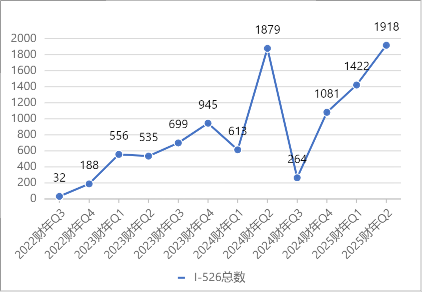 2025财年第二季度,美国移民局共收到1918份EB-5新政申请,其中包括:
