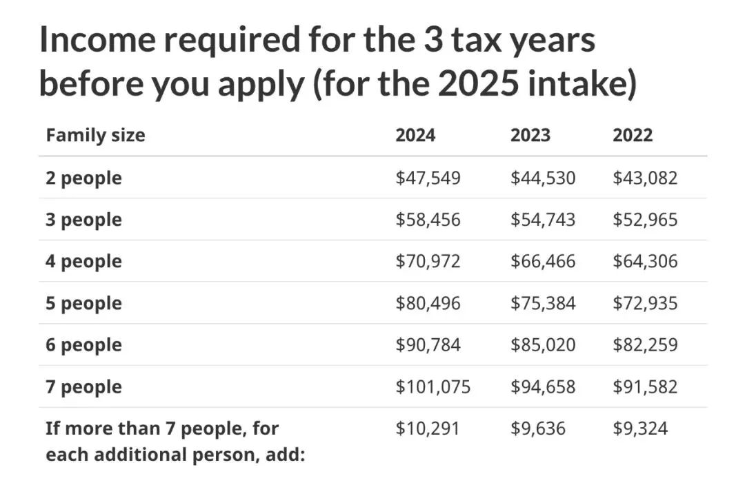 收入标准也会随着家庭规模水涨船高。