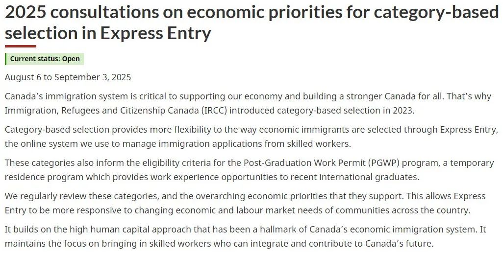 IRCC将于2025年9月3日截止公众咨询,最终政策或在年底公布。无论结果如何,这场人才争夺战已透露出加拿大移民的深层转向——从“数量”到“质量”,从“填补劳动力”到“抢夺战略资源”。
