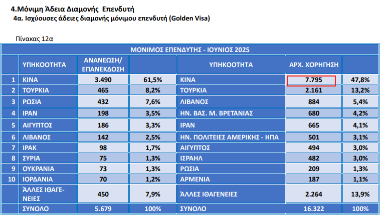 近日,希腊移民局公布了最新黄金签证的申请数据。数据显示,截至2025年6月,共收到16322份永久居留申请。