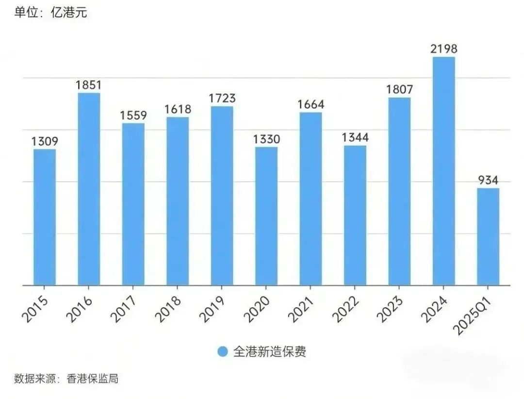 在市场规模上,香港同样不容小觑,2024年全香港新单保费2198亿港元,比2023年增长21.4%,创下历史新高。2025年******季度,全港新单保费934亿港元,同比飙升43.4%!