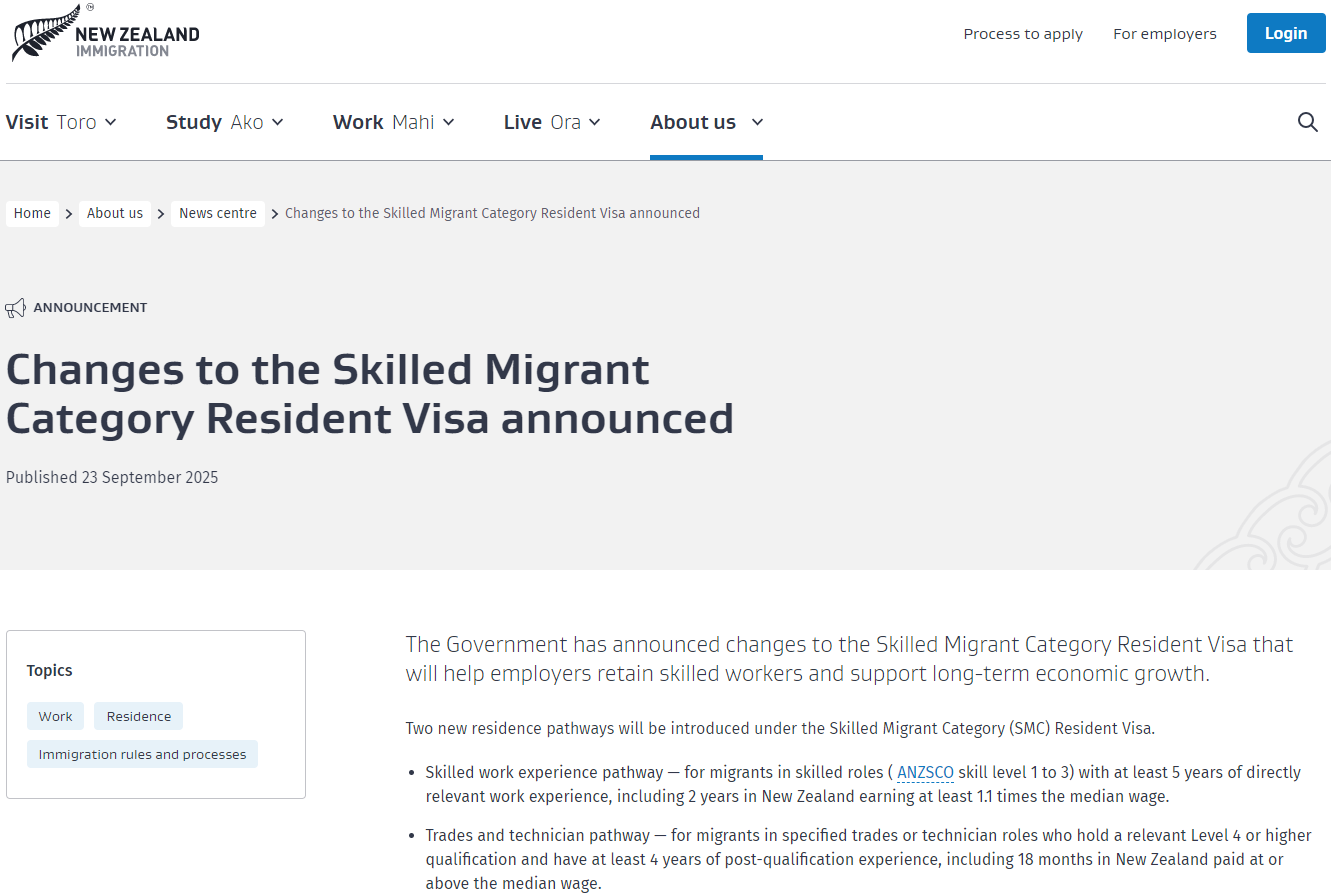9月23日,新西兰政府宣布对“技术移民类别居民签证”(SMC)进行改革!