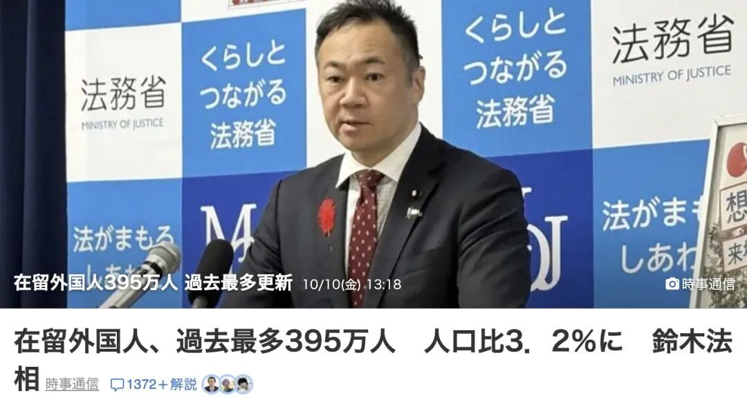 据日本媒体报道,日本法务大臣铃木馨祐于10月10日召开记者会,正式公布截至2025年6月末的在日外国人统计数据。
