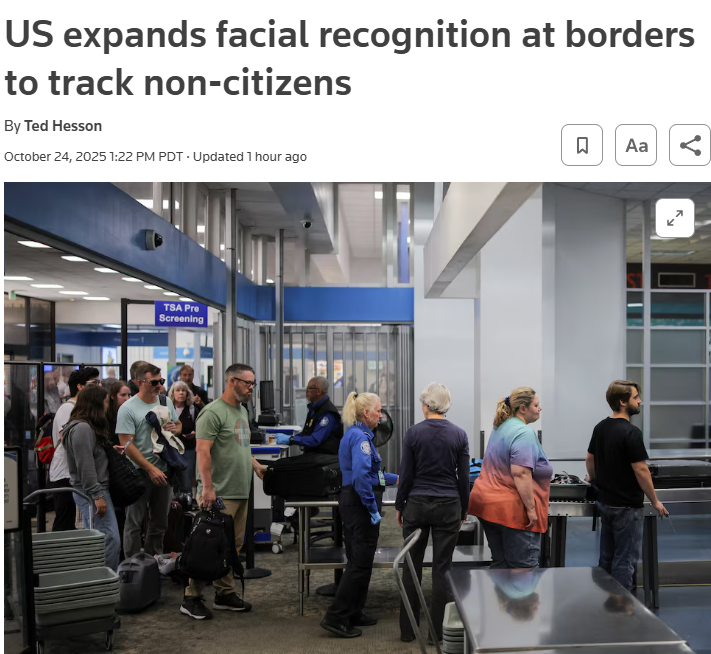 10月24日,美国国土安全部(Department of Homeland Security, DHS)发布新规,宣布扩大非公民出入境人脸识别技术应用范围,将14岁以下儿童及79岁以上老年人纳入检测对象,同时可要求提交指纹、DNA等生物特征信息,而此前这两个群体是豁免对象。
