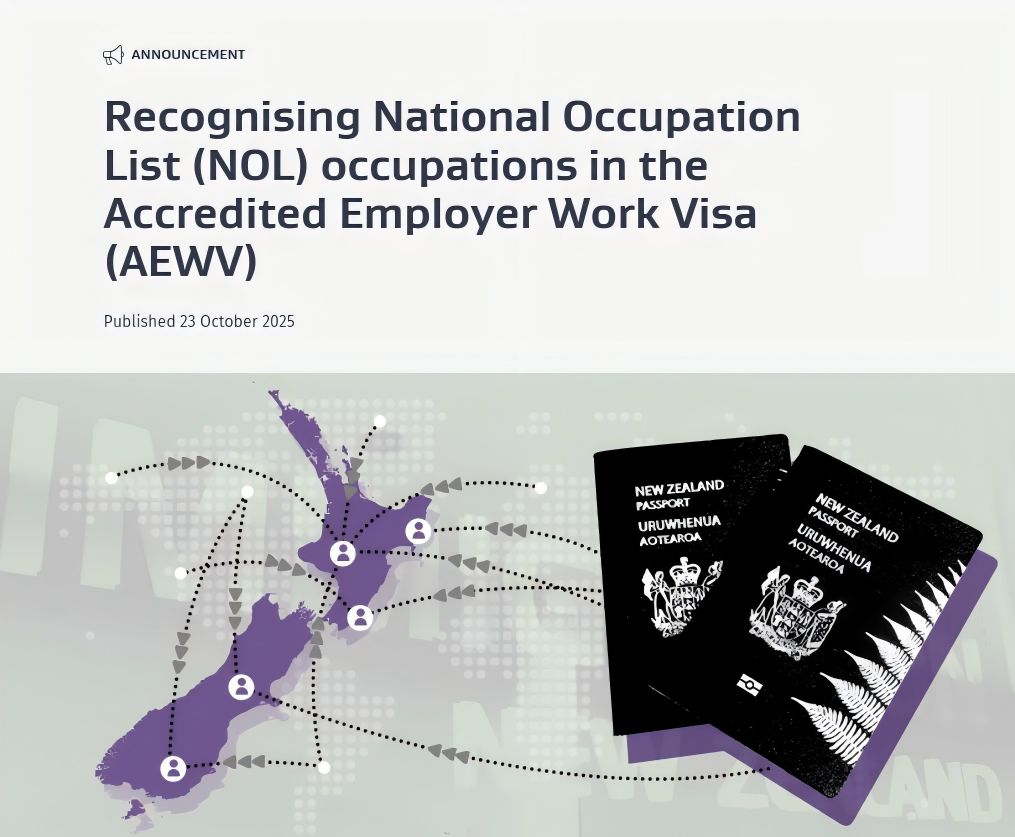 10月23日,新西兰移民局宣布,将自2025年11月3日起,更新“认证雇主工作签证”计划下87个新增职业的评估方式,以确保“国家职业清单”中高技能职业获得正式认可。