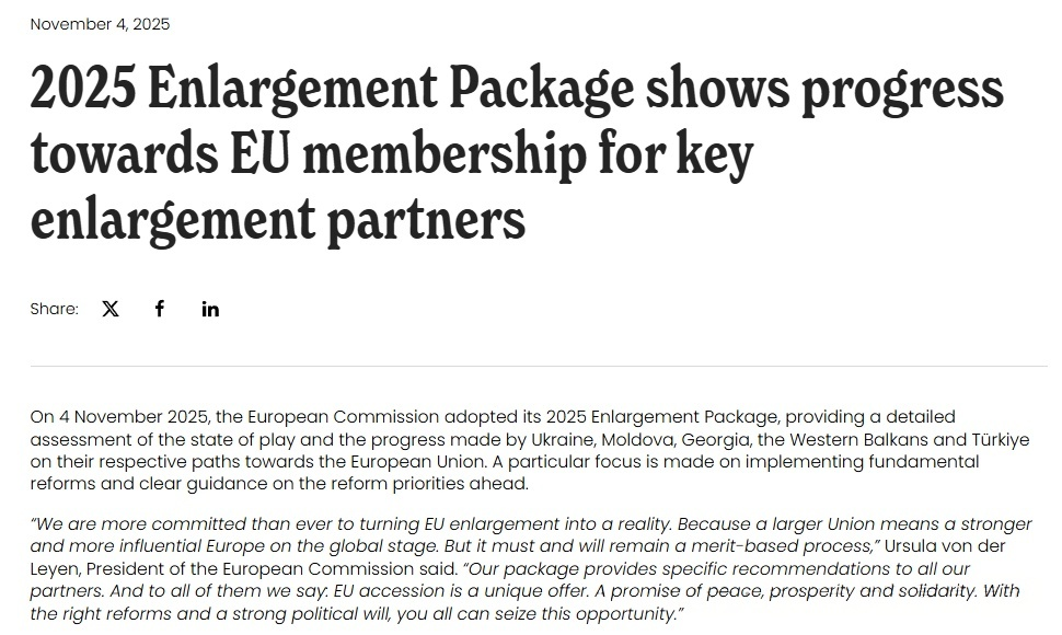 当地时间11月4日,欧盟委员会发布公告称,委员会当天通过了欧盟年度扩大方案,对过去一年中各扩大伙伴取得的进展进行了全面评估。