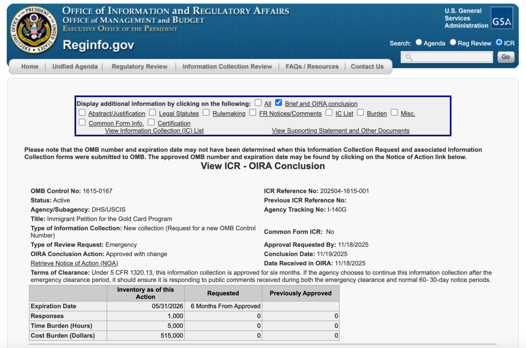 目前,I-140G表格仍在OMB审核阶段,未来在项目启动前可能会有所修改。特朗普在9月签署的行政令将实施期限定在12月18日。USCIS与商务部预计将在未来数周内公布更多细节。