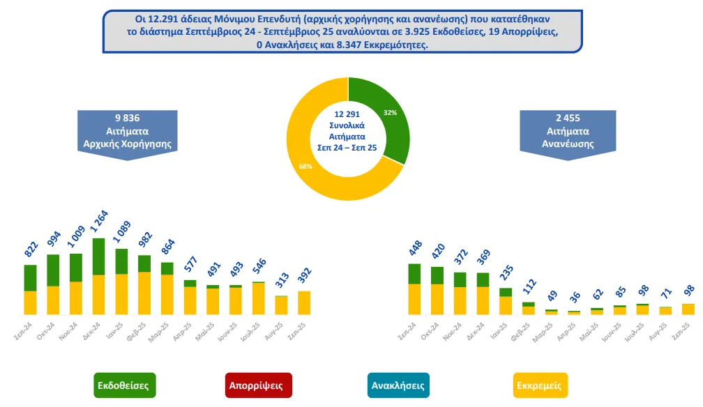 2024年9月至2025年9月,希腊黄金居留许可迎来又一轮数据高峰——全年首次申请量飙升至12,291份,创下历史新高。