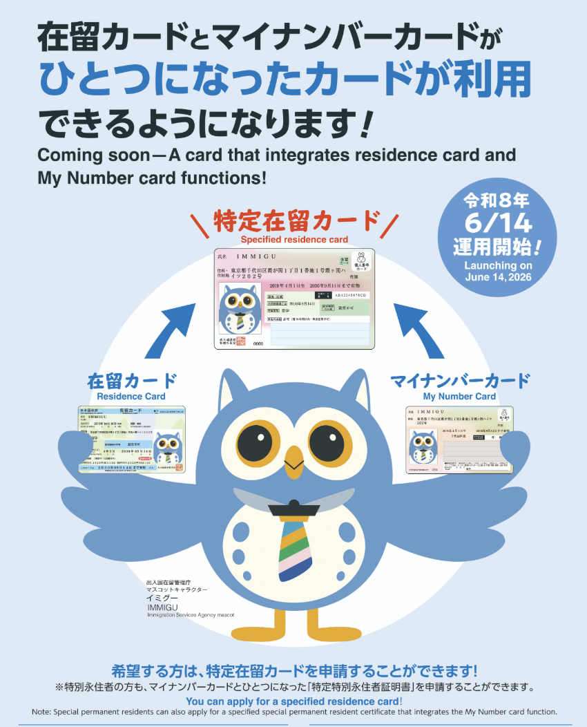 日本政府于近日正式发布公告,明确自2026年6月14日起,将全面实施新型“特定在留卡”及“特定特别永住者证明书”管理制度。该制度的核心变革在于推动在留卡与My Number(个人编号)卡的一体化整合,旨在优化行政流程并提升在日外国人的事务办理效率。