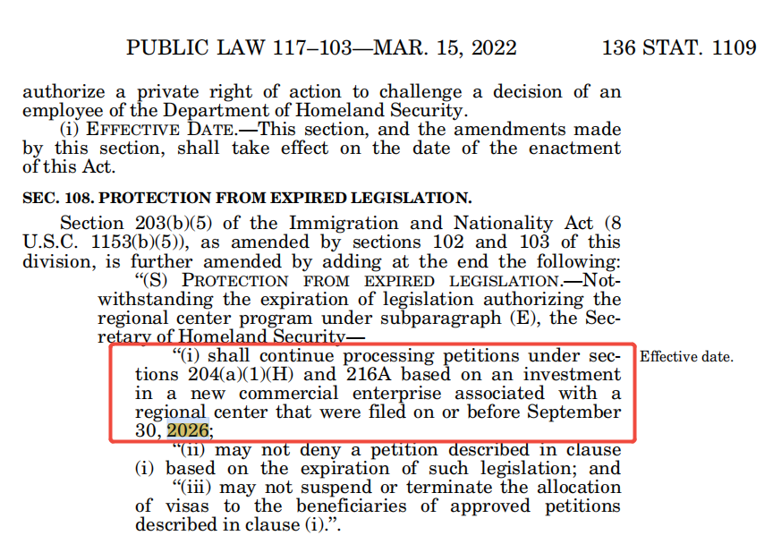 这是EB-5历史上对投资人保护力度******、法律确定性最高的一次政策安排。但是这个保护,只剩不到9个月。申请人必须在2026年9月30日前提交申请,错过这个日期就失去了祖父条款的保障;2026年9月30日之后递交的申请,如果2027年国会不续签,可能导致申请直接失效,或者其他不确定性。