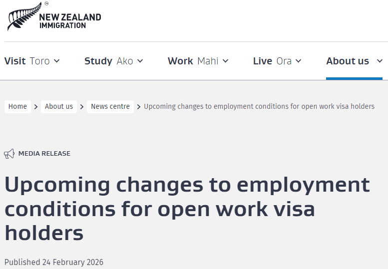 2月24日,新西兰移民局对开放式工作签证(Open Work Visa)做出明确解释!