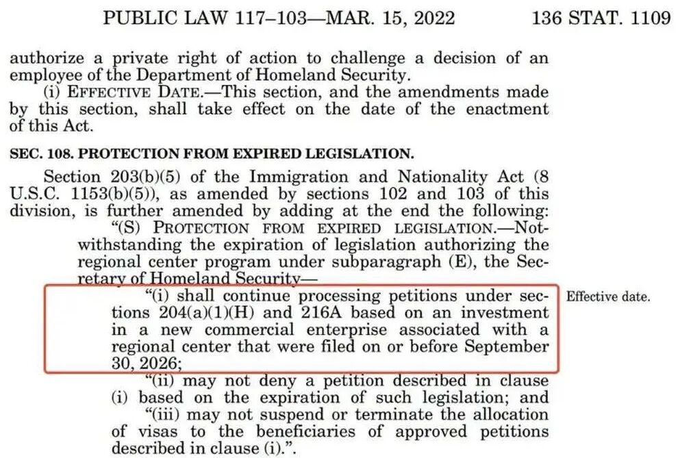 需要注意的是,EB-5区域中心计划的整体授权虽可延续至2027年9月30日,但祖父条款的政策保护窗口仅截止至2026年9月30日。