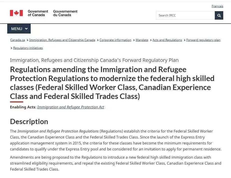 根据IRCC《前瞻性监管计划》的表述,此次拟议修订将引入一个全新的联邦高技能移民类别,简化申请资格要求,并同步废止现有的联邦技术工人类别、加拿大经验类别和联邦技工类别。