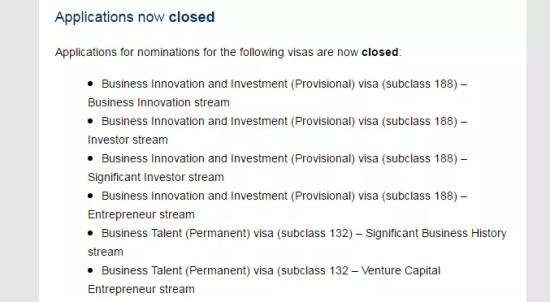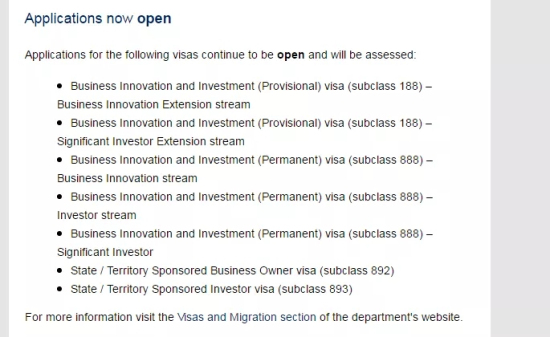 此次临时关闭基本包括所有澳洲商业投资移民类别的******阶段签证州担申请。而转永居888签证仍然可以申请,没有影响。