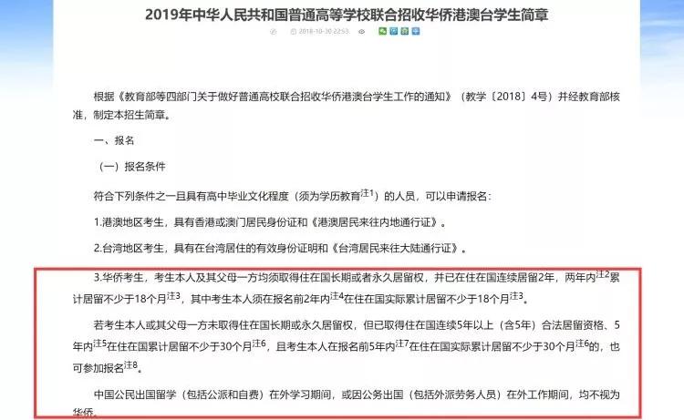 2、对于考生父母一方,需要连续5年内在国外累计居住30个月,不限于考试之前的5年。
